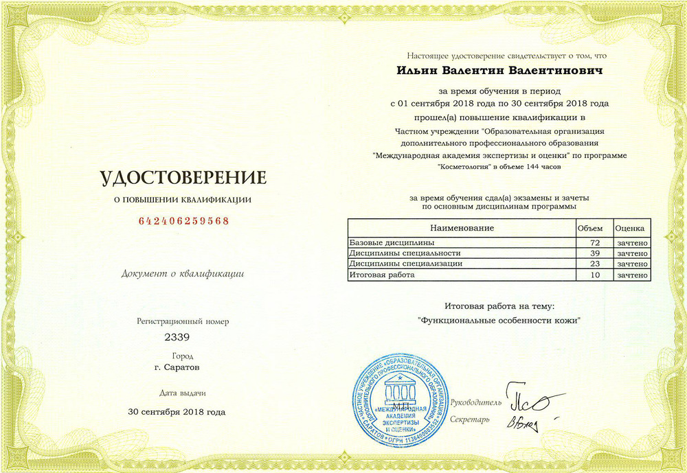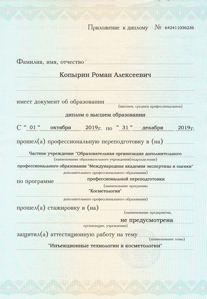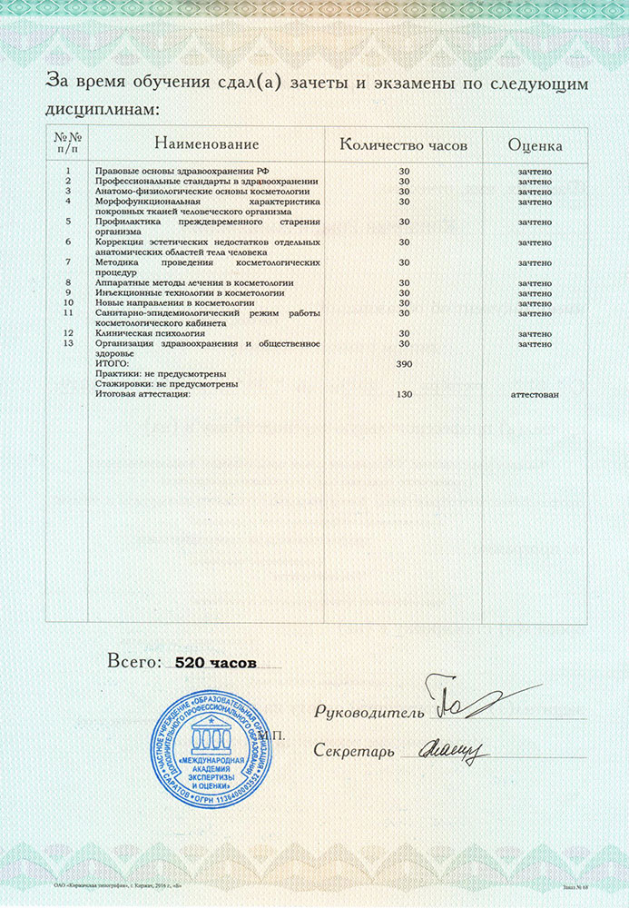 ЧУ «ООДПО «Международная Академия Экспертизы и Оценки» осуществляет переподготовку косметологов.